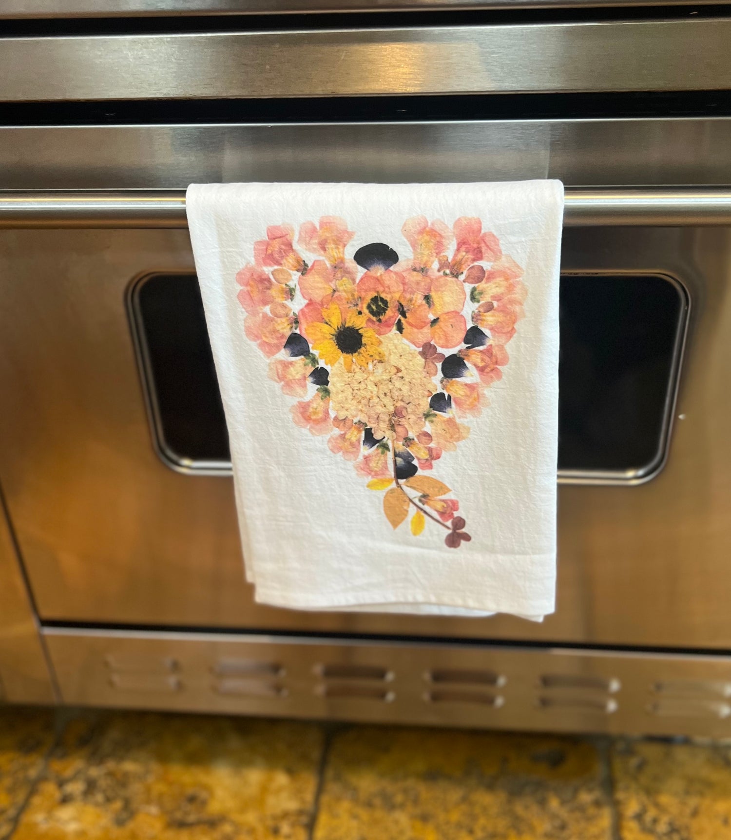 Our botanical designs, meticulously crafted from an array of dried and preserved flowers have found their way onto exquisite tea towels. Each tea towel becomes a canvas, adorned with the intricate beauty of nature, merging practicality with artistry in everyday kitchen essentials. These towels, not merely functional but also visually captivating, offer a unique way to infuse the ambiance of a space with the delicate charm of botanical artistry.